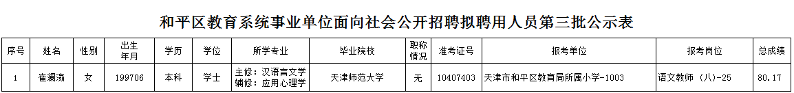附件:和平区教育系统事业单位面向社会公开招聘拟聘用人员第三批公示表