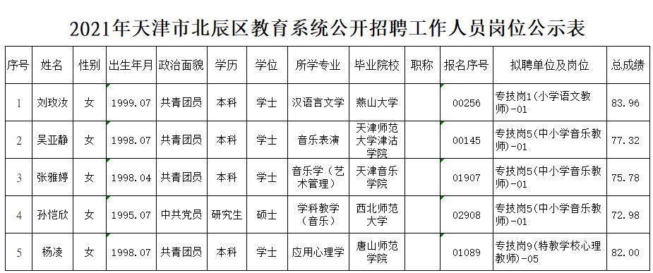 附件:2021年天津市北辰区教育系统公开招聘工作人员岗位公示表