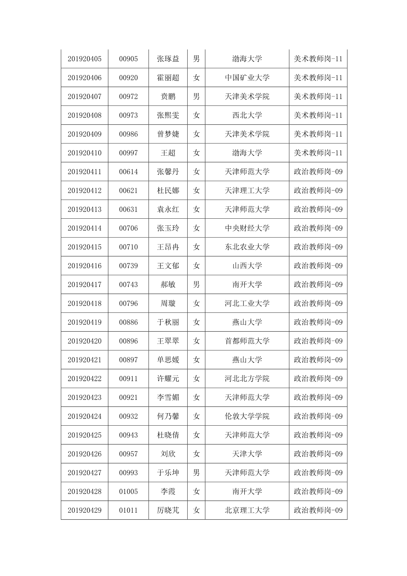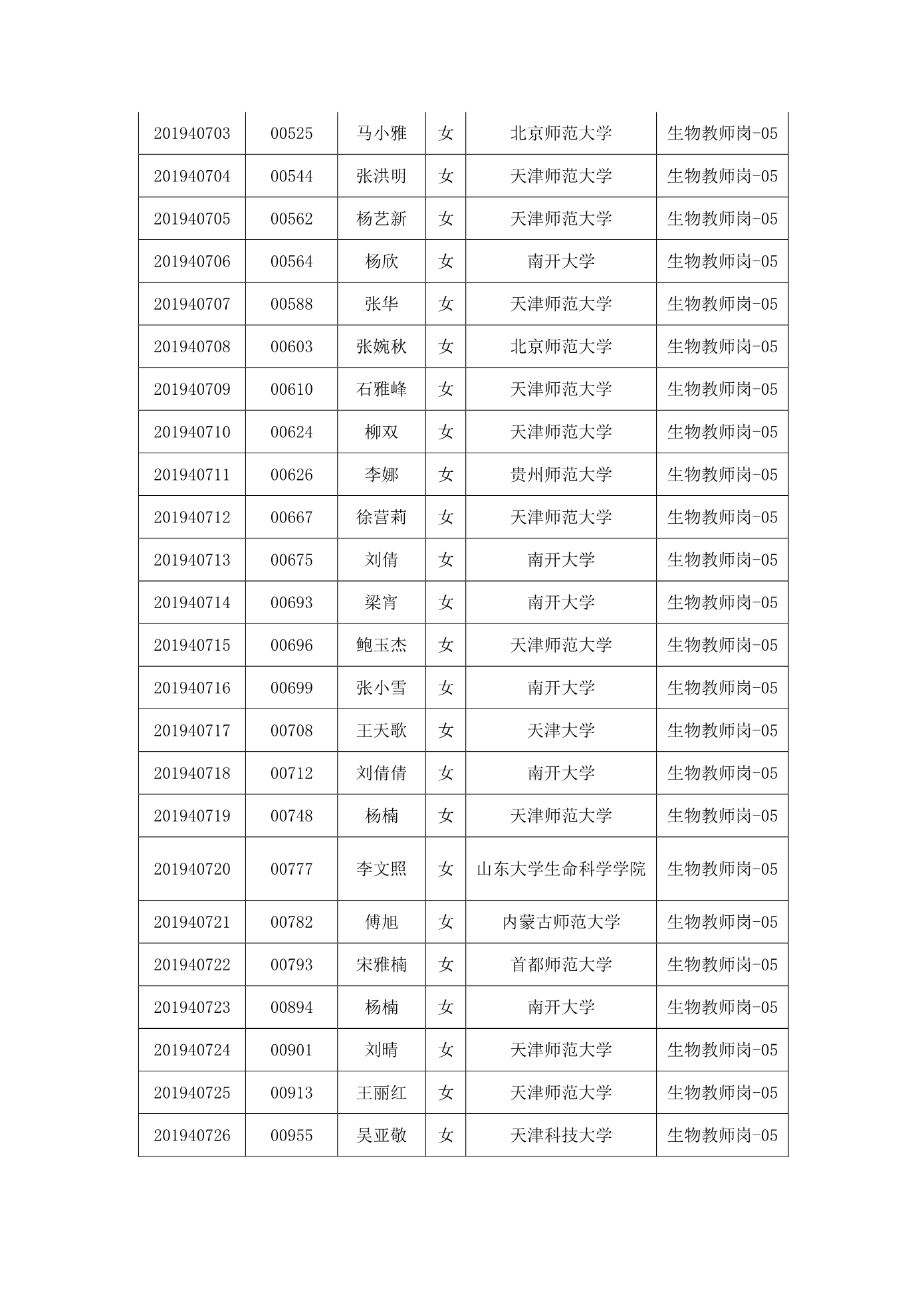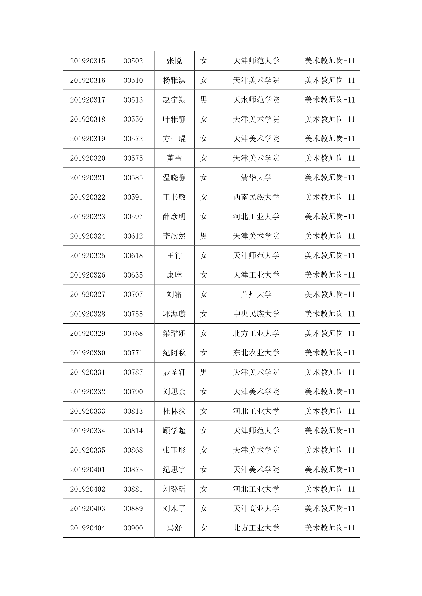 天津市第一中学2020年公开招聘参加笔试人员名单