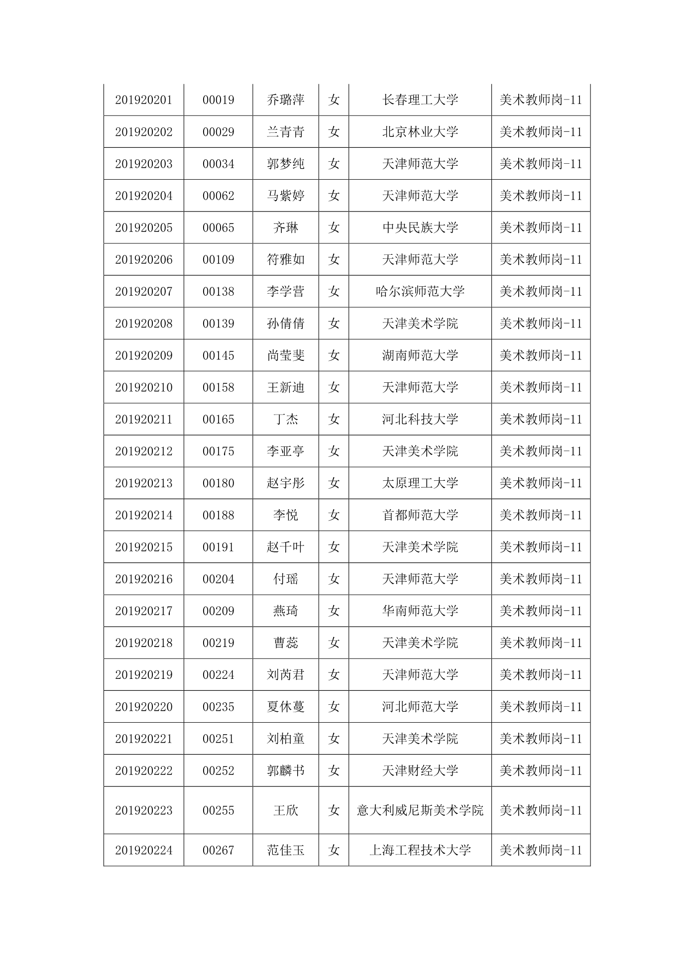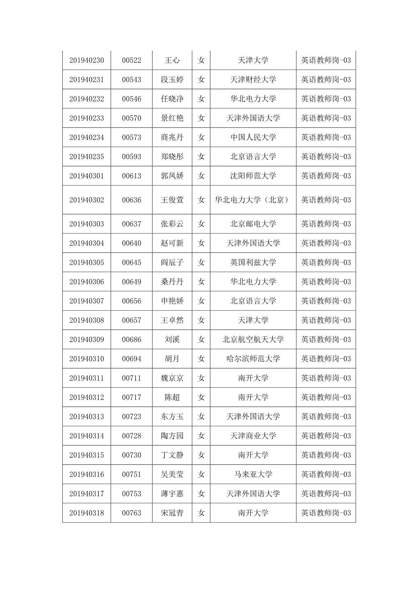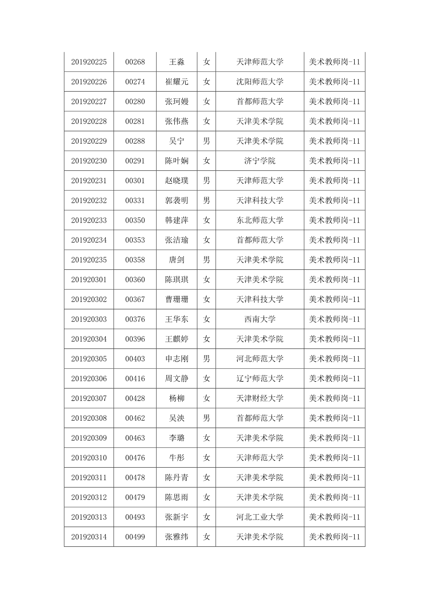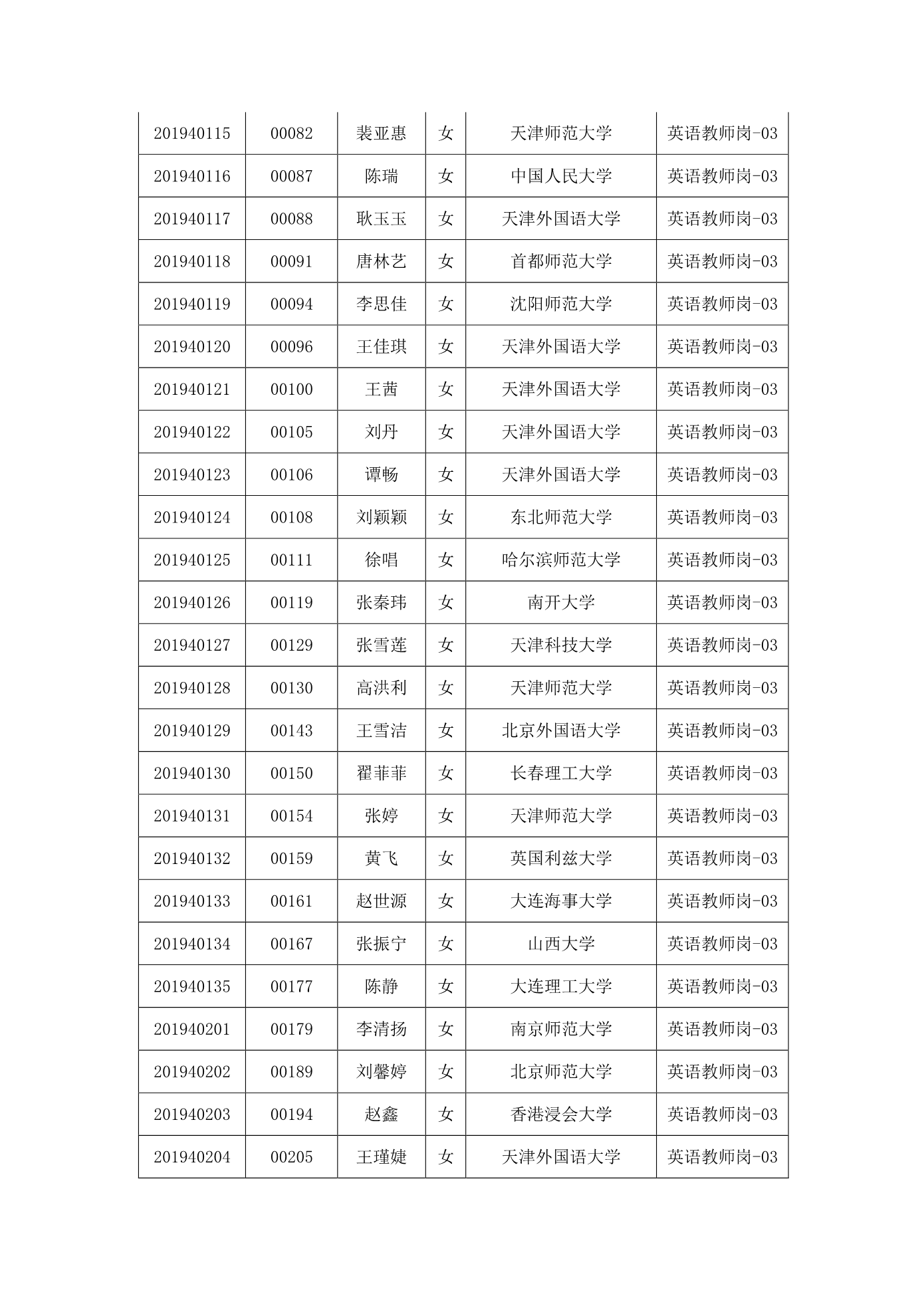 天津市第一中学2020年公开招聘参加笔试人员名单