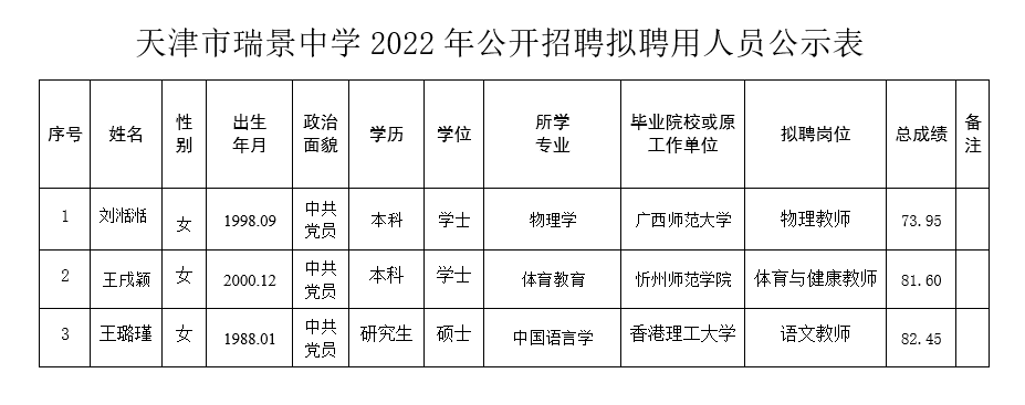 按照《天津市事业单位公开招聘人员实施办法(试行)》(津人社局发〔2011〕10号)要求,现将我校拟聘用人员予以公示。