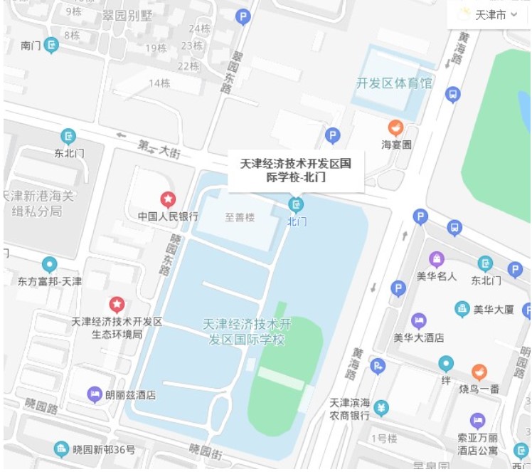 天津经济技术开发区国际学校(天津经济技术开发区晓园街9号(北门)校门进入)