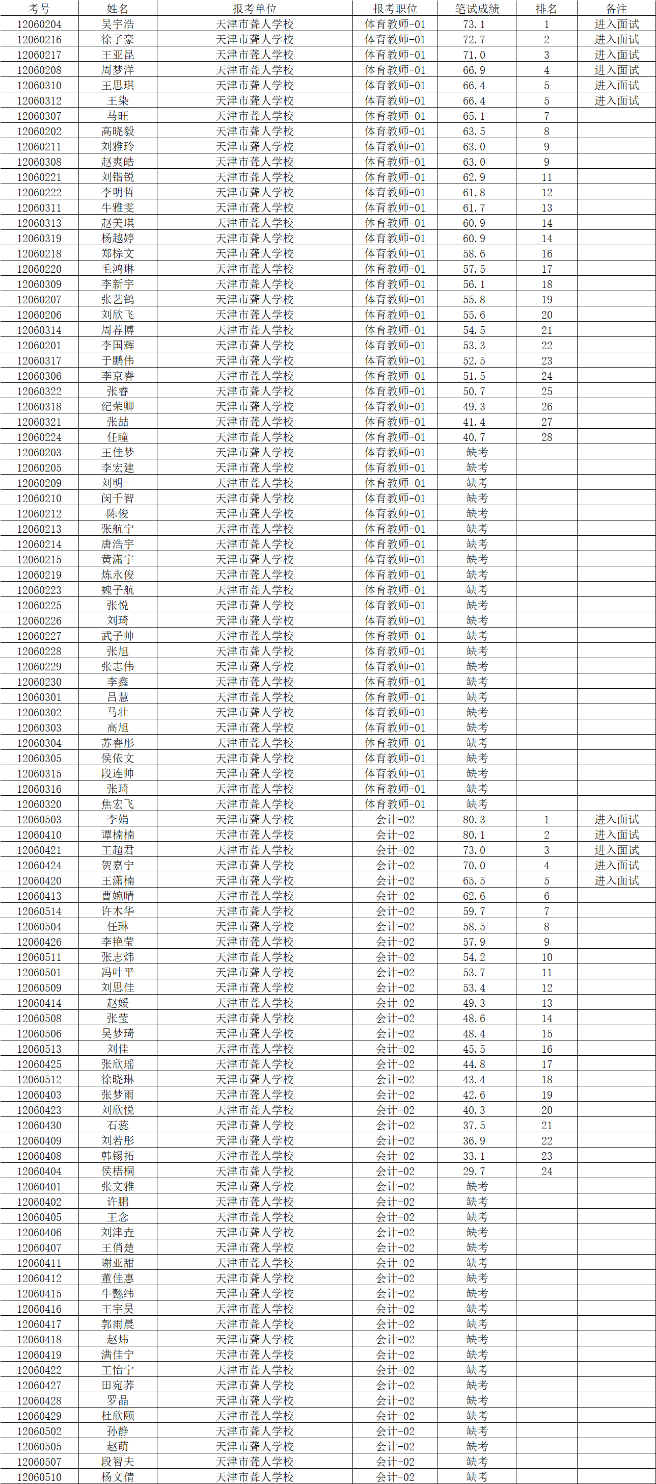 天津市聋人学校2024年公开招聘笔试成绩公示