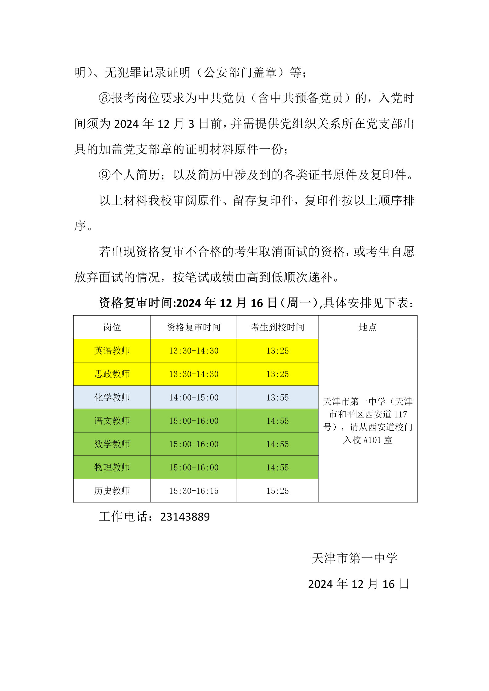 天津一中2025年公开招聘资格复审通知