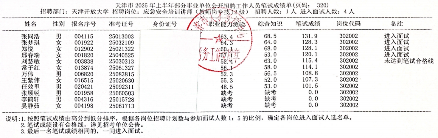 关于公布天津开放大学2025年第二批公开招聘笔试成绩的通知