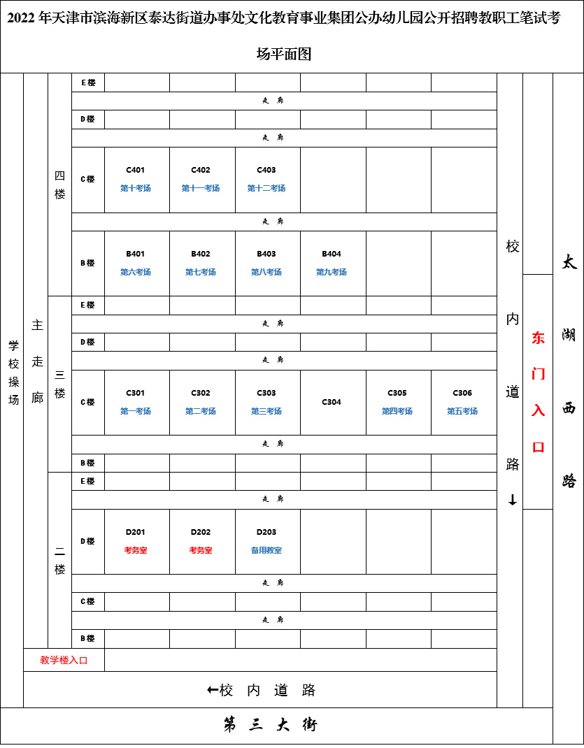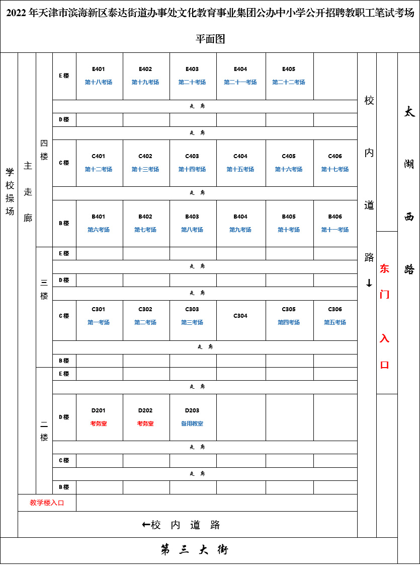 关于2022年天津市滨海新区泰达街道文化教育事业集团公办中小学、幼儿园公开招聘教职工笔试考场分布示意图公告