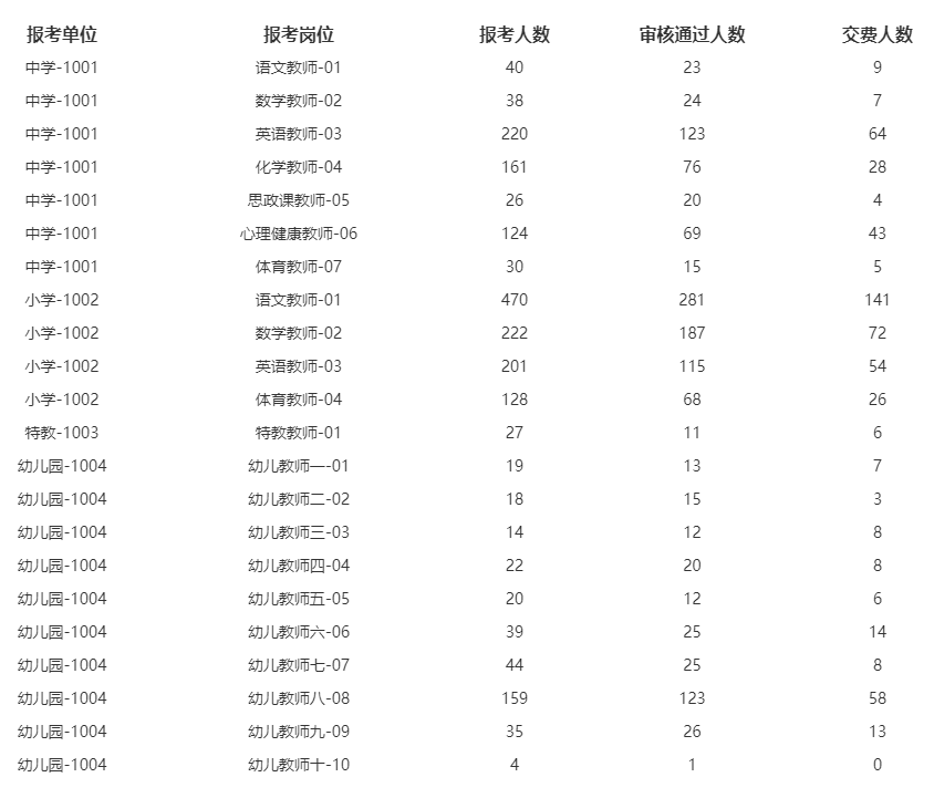 天津市东丽区2021年公开招聘教师报考情况统计 (统计时间:2021年6月30日上午10点)