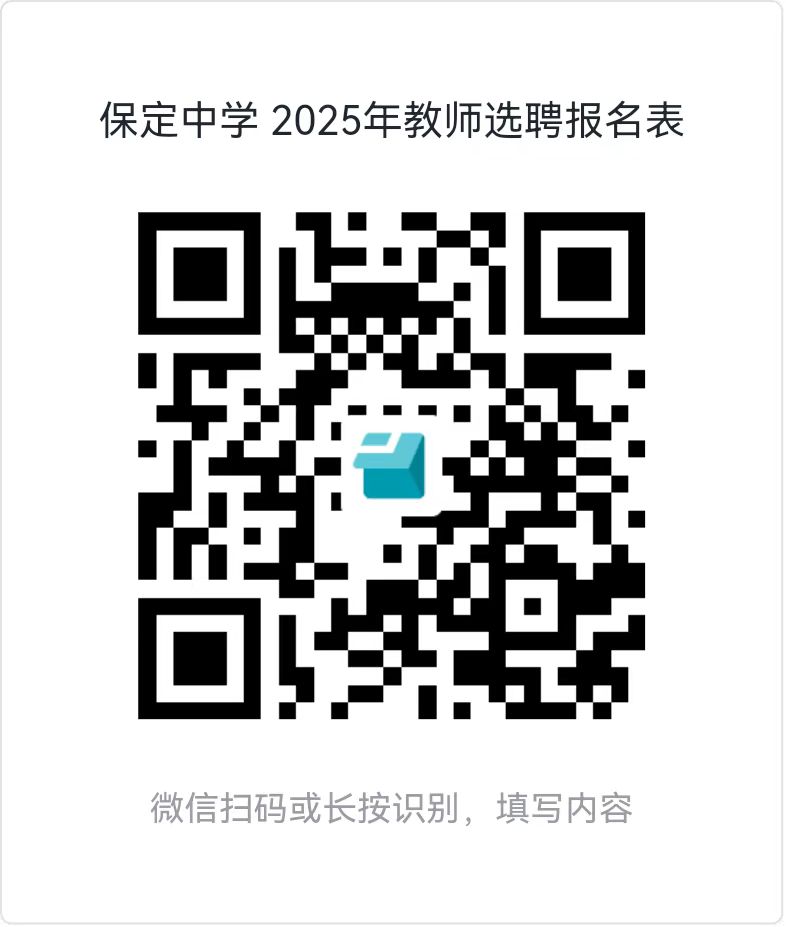 如您符合条件且有意向报考,请扫描填写下方表单并加入QQ群(2025保定中学选聘(陕师大)qq群号:641301399)。请关注学校保定教育发布、保定市人社局官网招聘专题。
