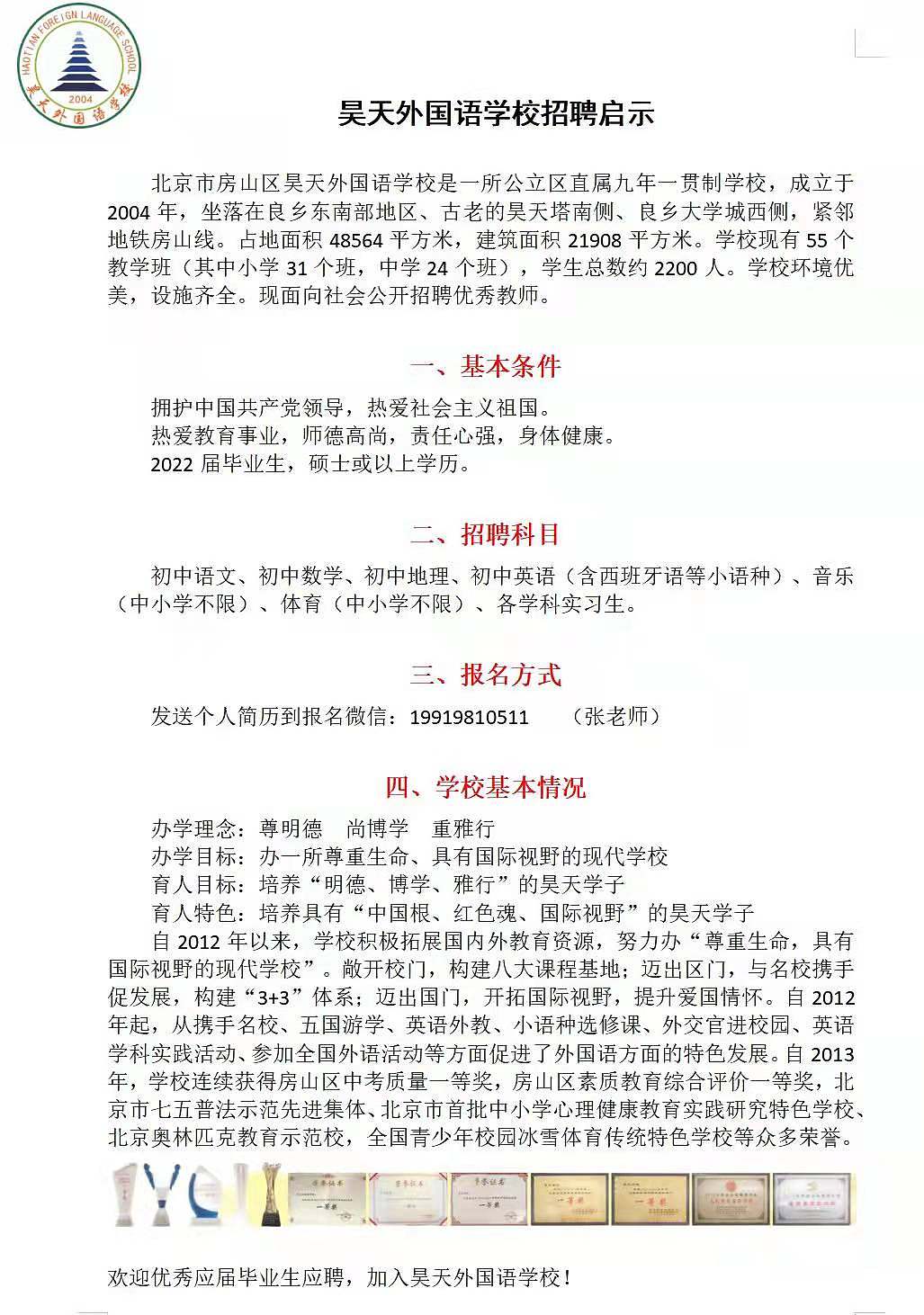 昊天外国语学校招聘启示