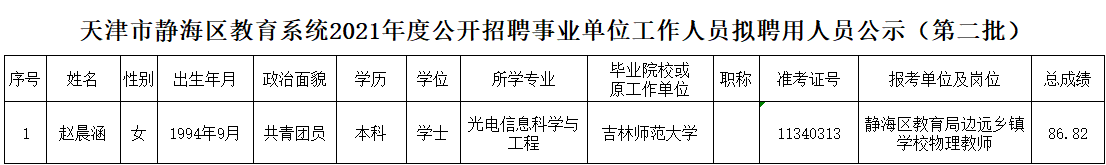 附件:天津市静海区教育系统2021年度公开招聘事业单位工作人员拟聘用人员公示表(第二批)