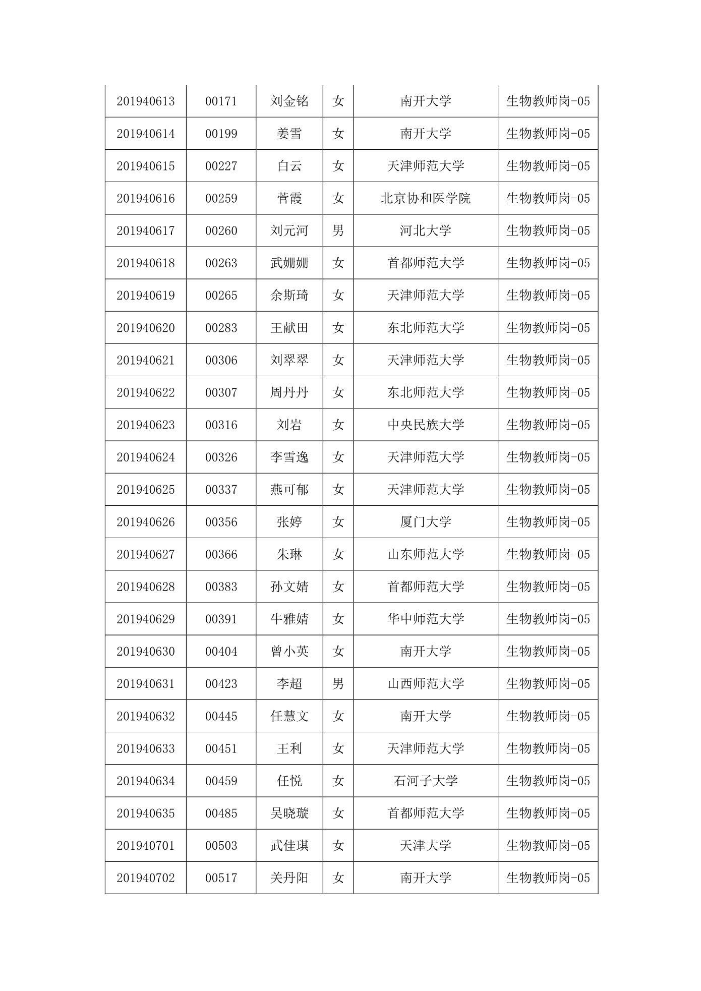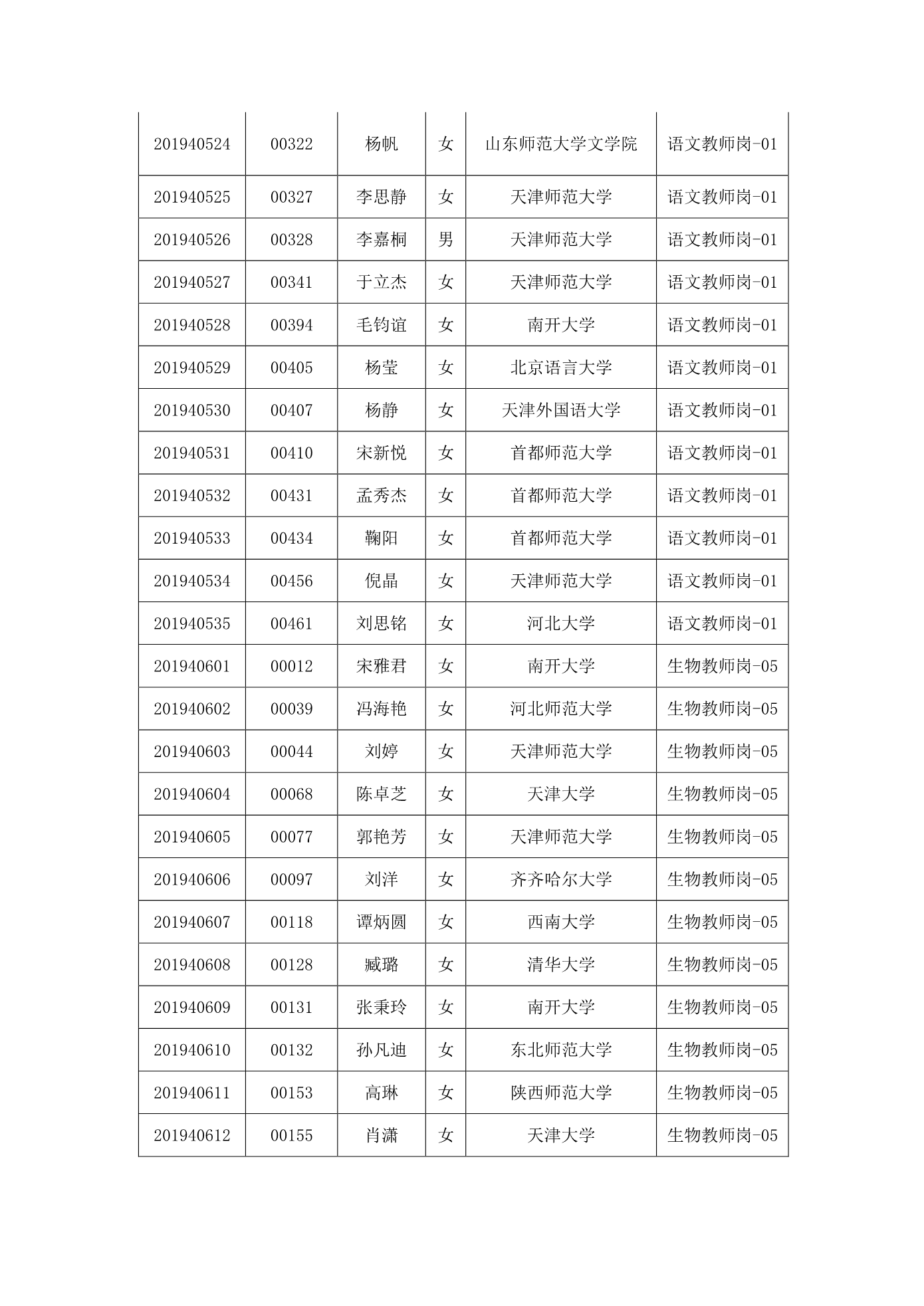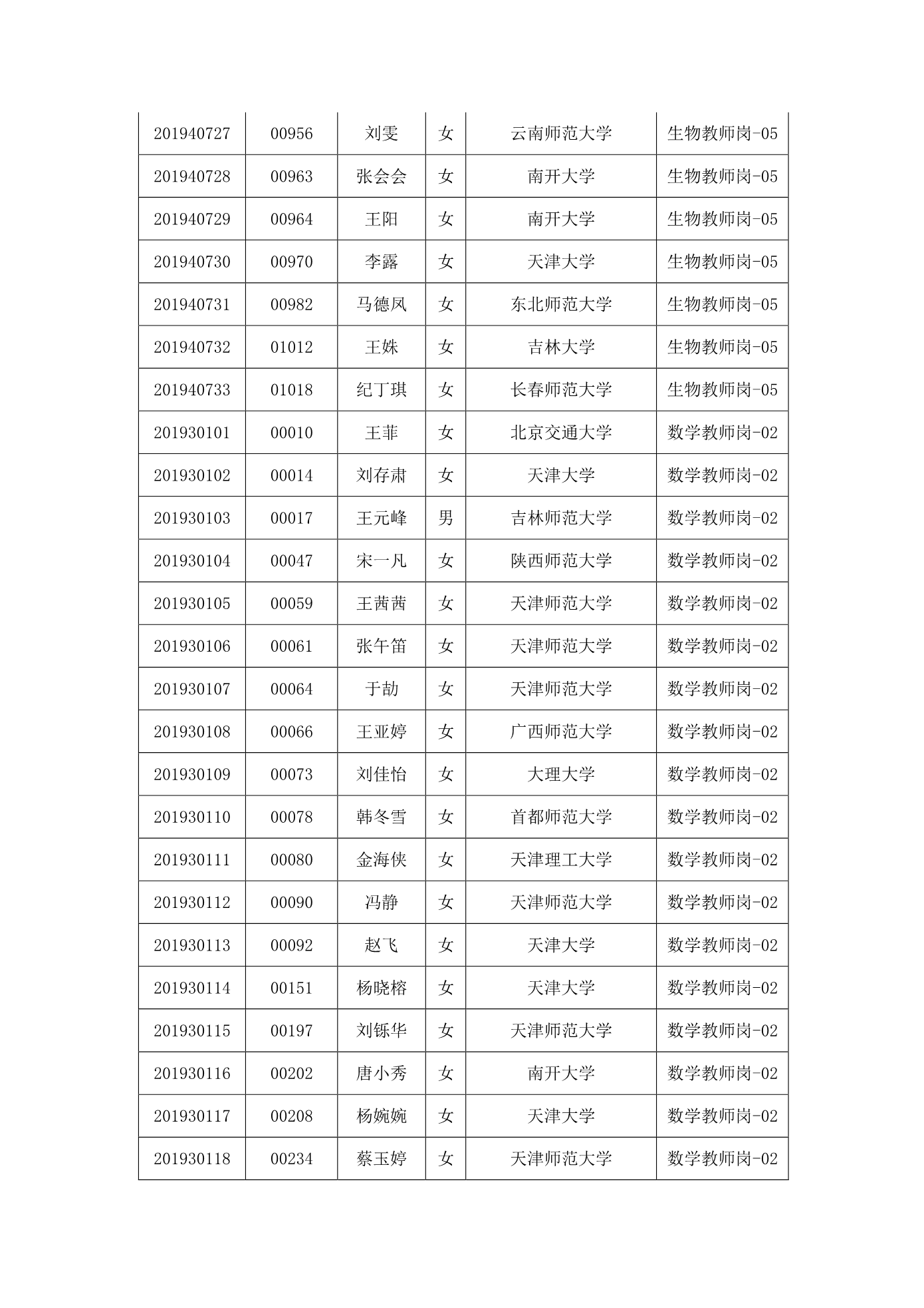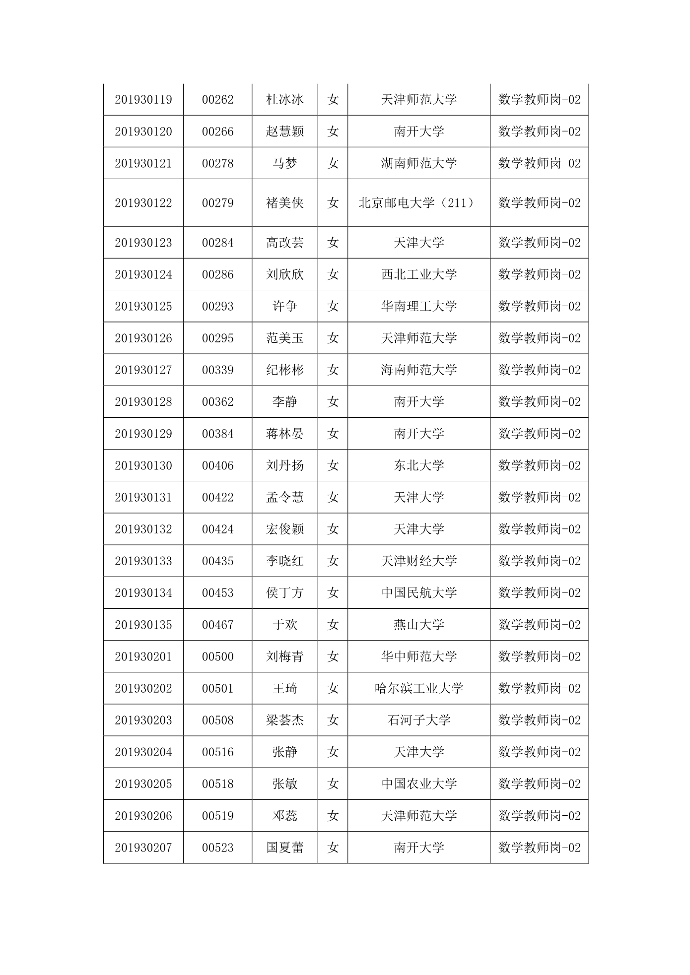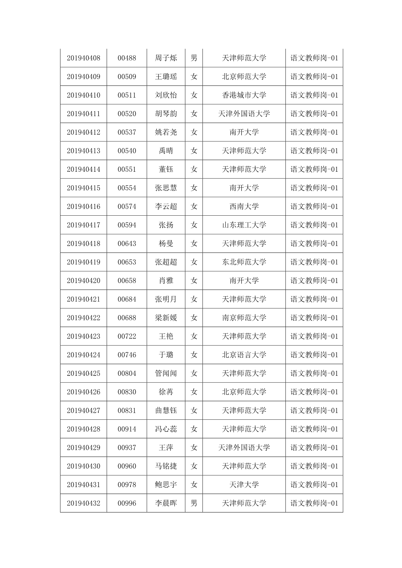 天津市第一中学2020年公开招聘参加笔试人员名单