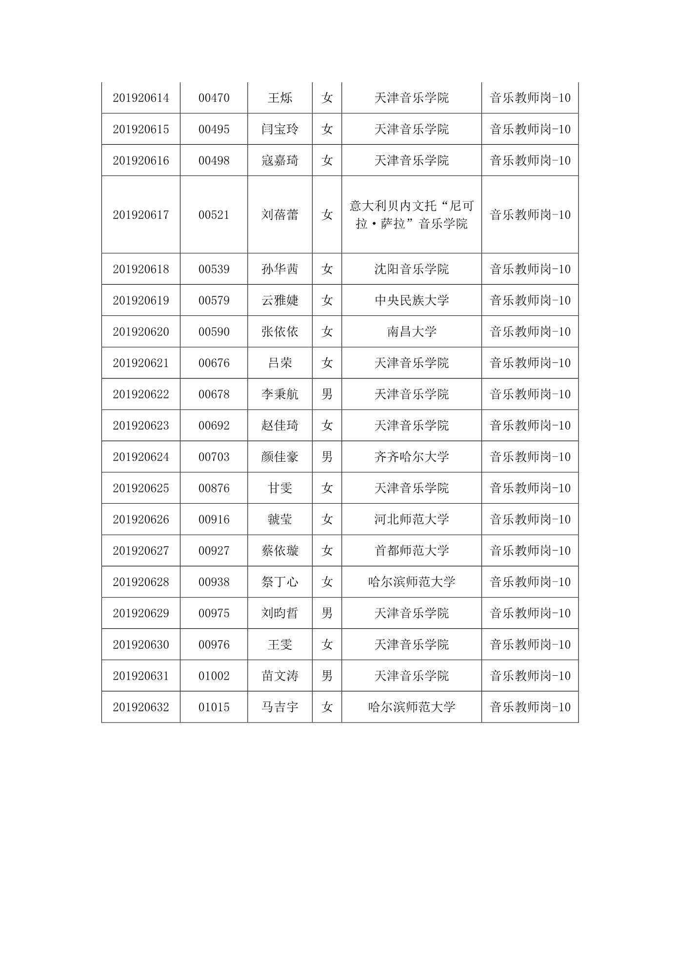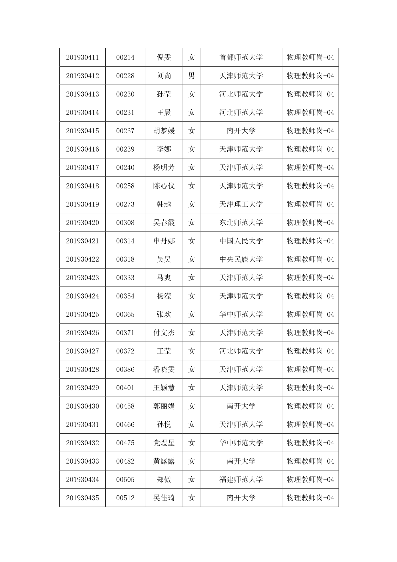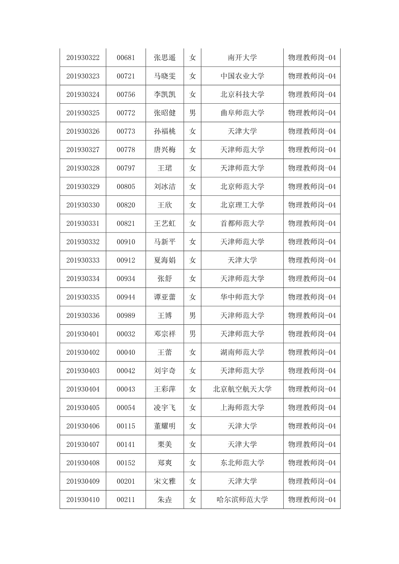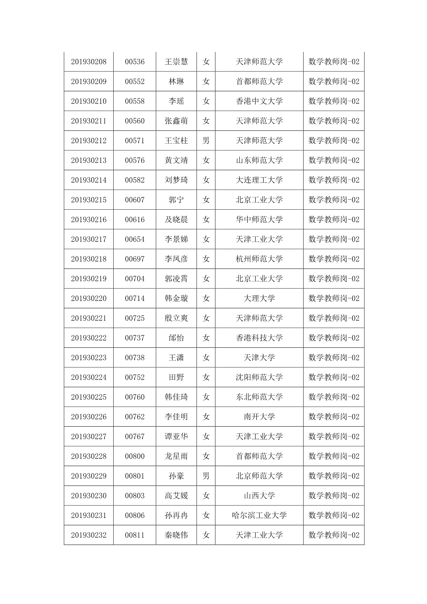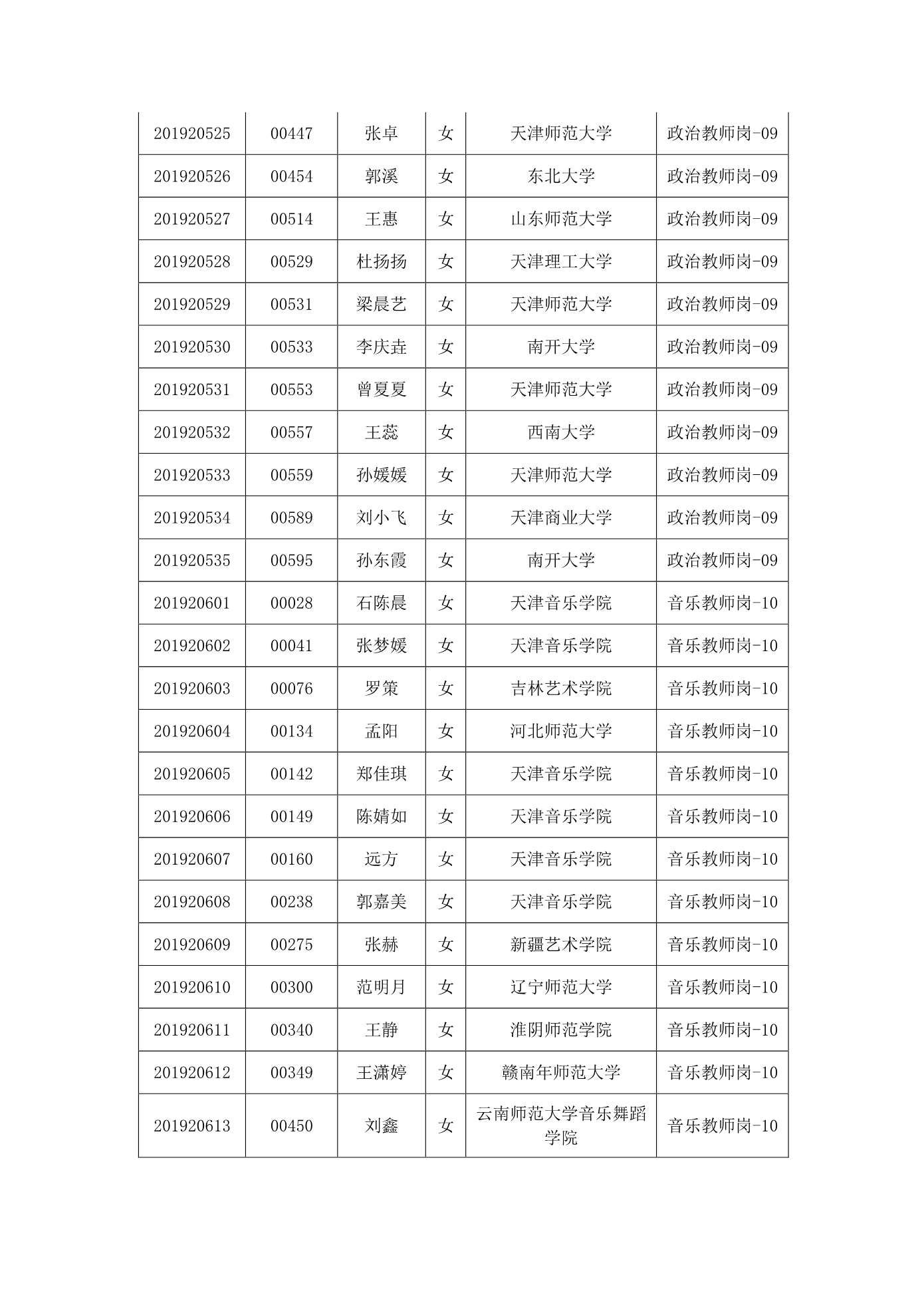天津市第一中学2020年公开招聘参加笔试人员名单