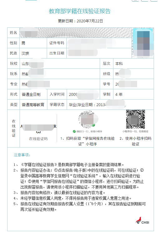 (与教育部学籍在线验证报告一样都可以证明自己学历  根据每个区要求准备)