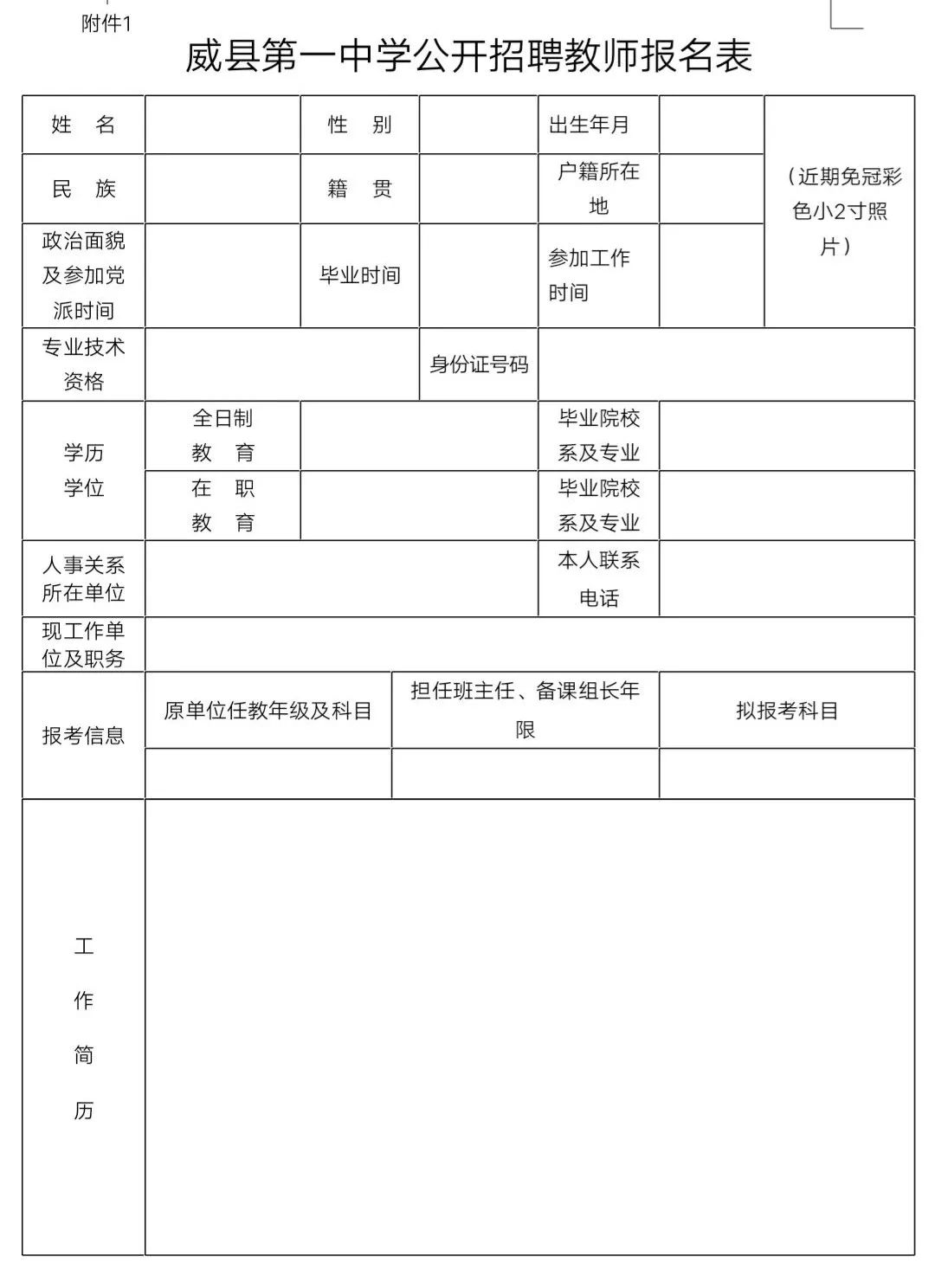1.有诚意自愿到我校应聘的教师填写《威县第一中学招聘教师报名表》(见附件),应聘者请将填好的《报名表》、本人简历及各种荣誉证书照片发至邮箱zq****@126.com。邮件主题注明:应聘学科+姓名+毕业学校。