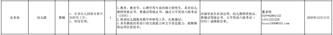 北京大学医学部幼儿园招聘信息
