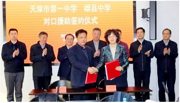 在京津冀协同发展、雄安新区三年教育大提升的新时代背景下,雄安新区雄县中学与天津市第一中学签署了对口援助协议,两校围绕“引领学校文化建设、提高教育教学质量、提升教师队伍水平、共享网络教育资源、组织学生交流研学”五大工程开展了教师跟岗学习、班主任培训、学科团队交流等几十次活动。