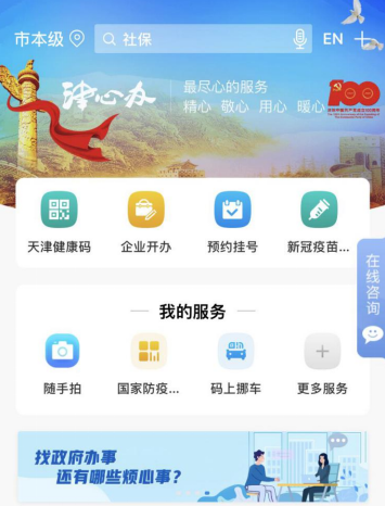 十九、在手机上打开“津心办app”,进入首页