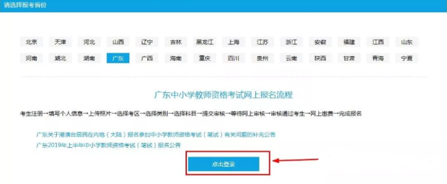 考生进入报名系统后,选择好报名省份,点“点击登录”。