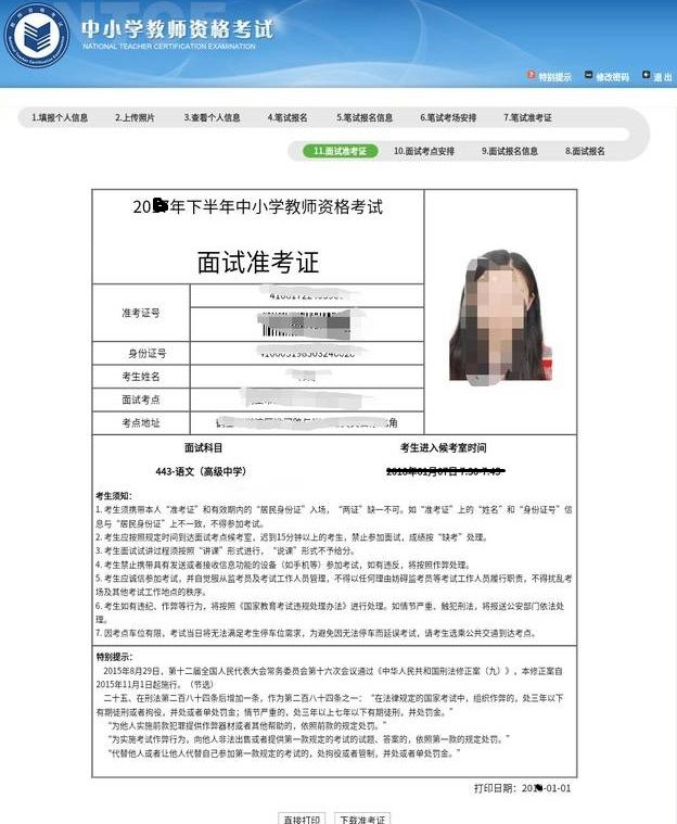 22年上半年教师资格面试(准考证)打印通知