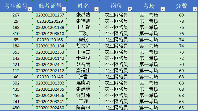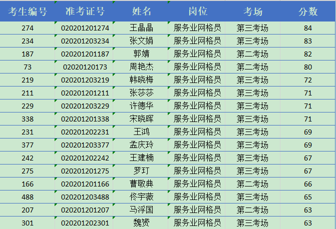 天津市西青区张家窝镇社区协管员、网格员岗位工作人员 笔试合格者名单