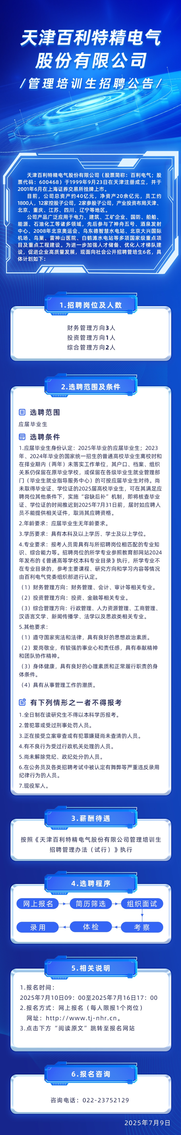【国企】天津百利特精电气股份有限公司管理培训生招聘公告
