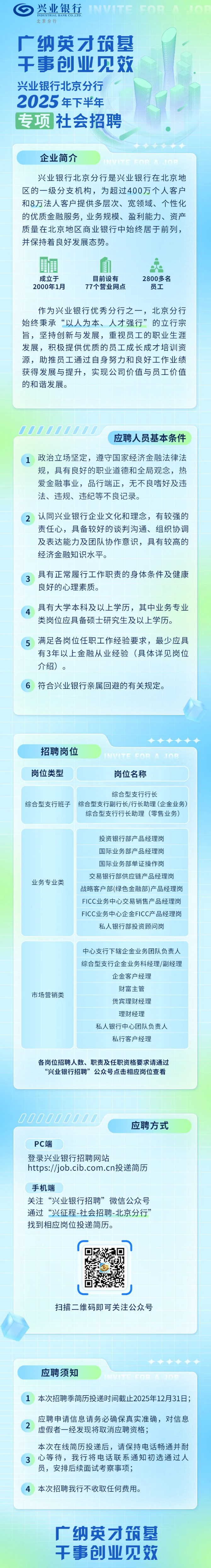兴业银行北京分行2025年下半年专项社会招聘
