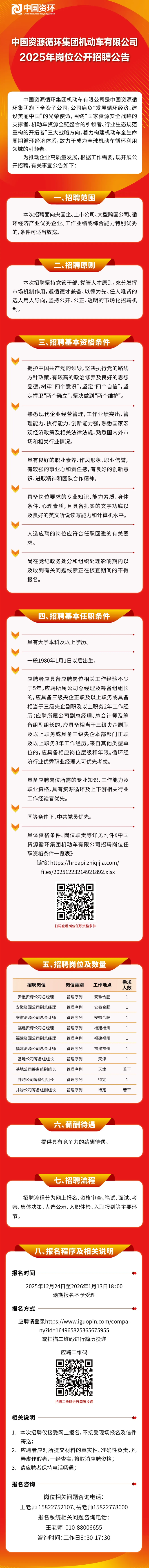 中国资源循环集团机动车有限公司2025年岗位公开招聘公告