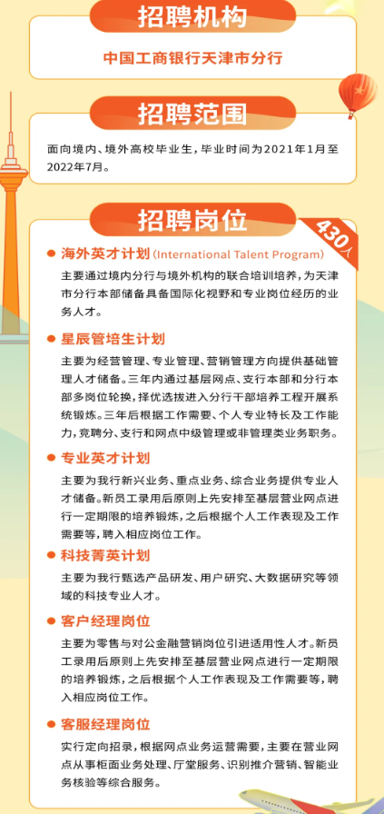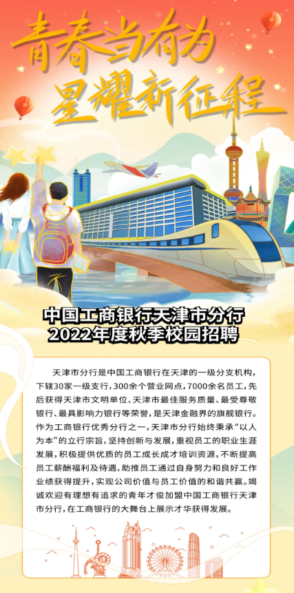 中国工商银行天津市分行2022年度秋季校园招聘