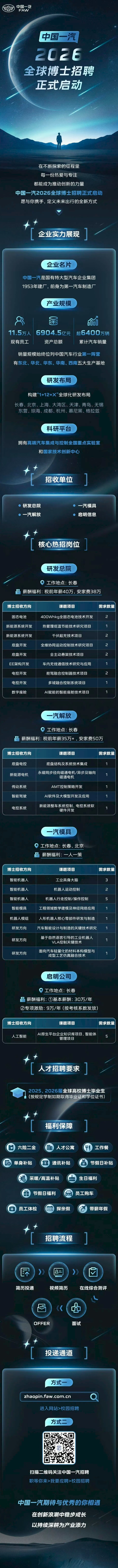 中国一汽2026全球博士招聘