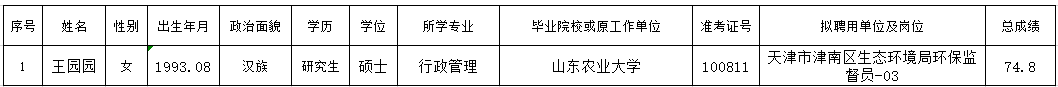 天津市津南区2020年度公开招聘编制外合同制工作人员公示表(第二批)