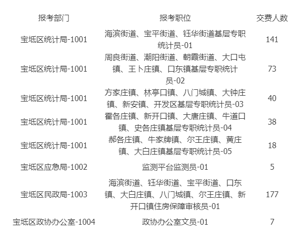 2021年宝坻区公开招聘机关事业单位编外人员报考情况统计(统计时间:2021年4月15日上午10点)