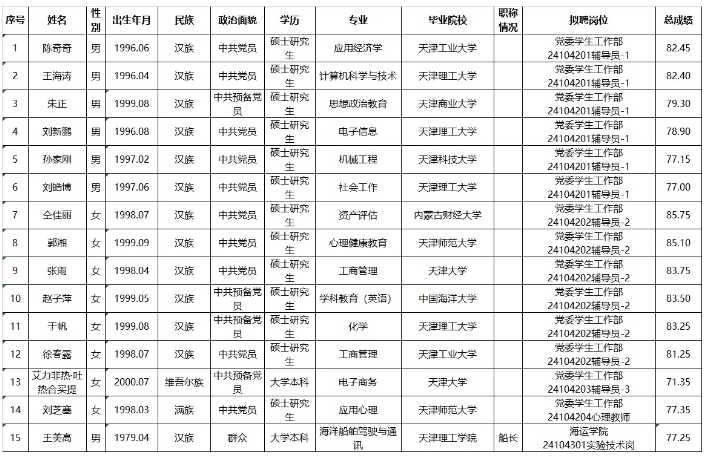 天津理工大学2024年度公开招聘计划(硕士辅导员和心理教师岗)、(实验技术岗)拟聘人员公示20240626