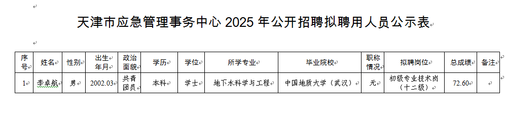 附件:天津市应急管理事务中心2025年公开招聘拟聘用人员公示表