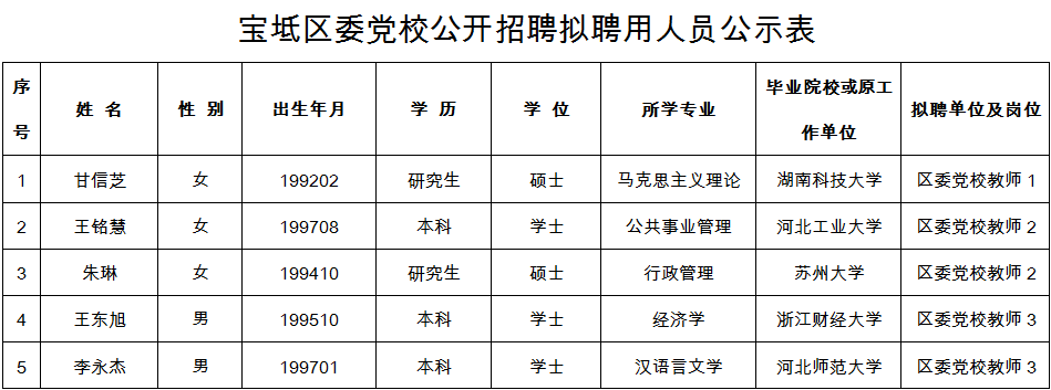 附件:宝坻区委党校公开招聘拟聘用人员公示表