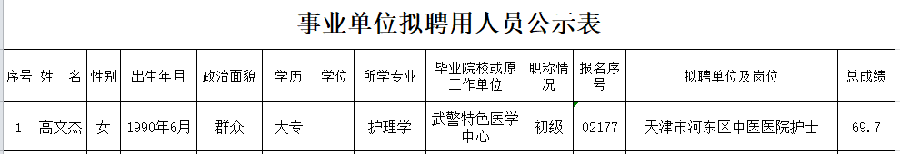 附件:2019年天津市河东区卫健系统公开招聘事业单位工作人员拟聘用人员公示名单