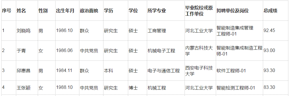 根据2020年5 月29 日发布的《天津职业技术师范大学机械工程学院派遣制工作人员招聘公告》,经资格审查、笔试和面试,依据考试成绩由高到低排序,现将拟聘用人员予以公示(名单附后)。公示时间为:2020 年 6 月 29日— 2020 年 7 月 7 日(7个工作日)。