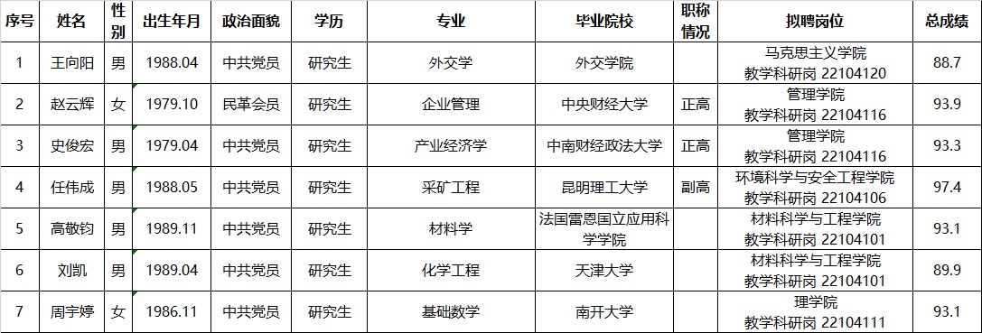 天津理工大学2022年公开招聘部分岗位拟聘人员公示