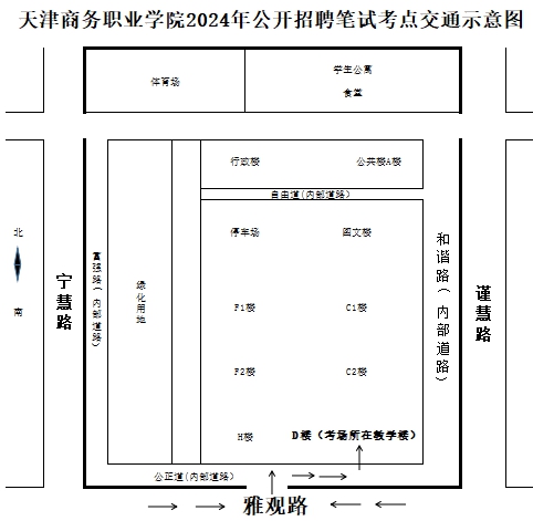 3.考试当天校内无法停放考生车辆,请从学校南门(雅观路)步行入校。考生车辆可停放在宁慧路或谨慧路,雅观路不可停车。交通示意图如下: