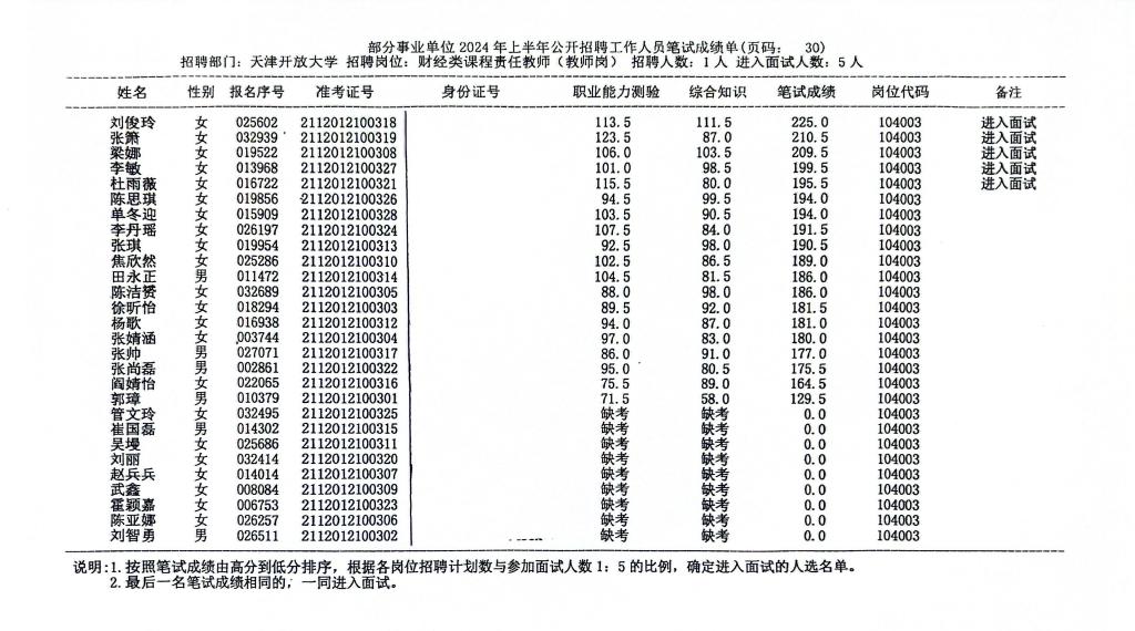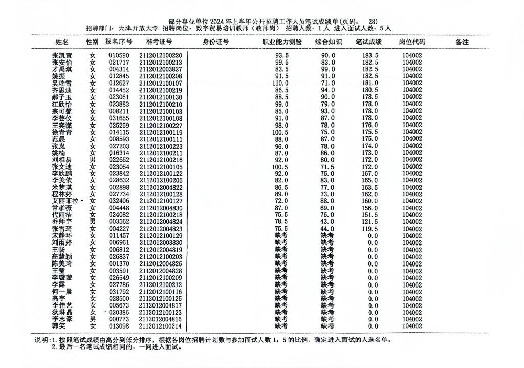 关于公布天津开放大学2024年第二批公开招聘笔试成绩的通知