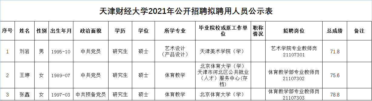 按照《天津市事业单位公开招聘人员实施办法(试行)》(津人社局发〔2011〕10号)要求,现将拟聘用人员予以公示。