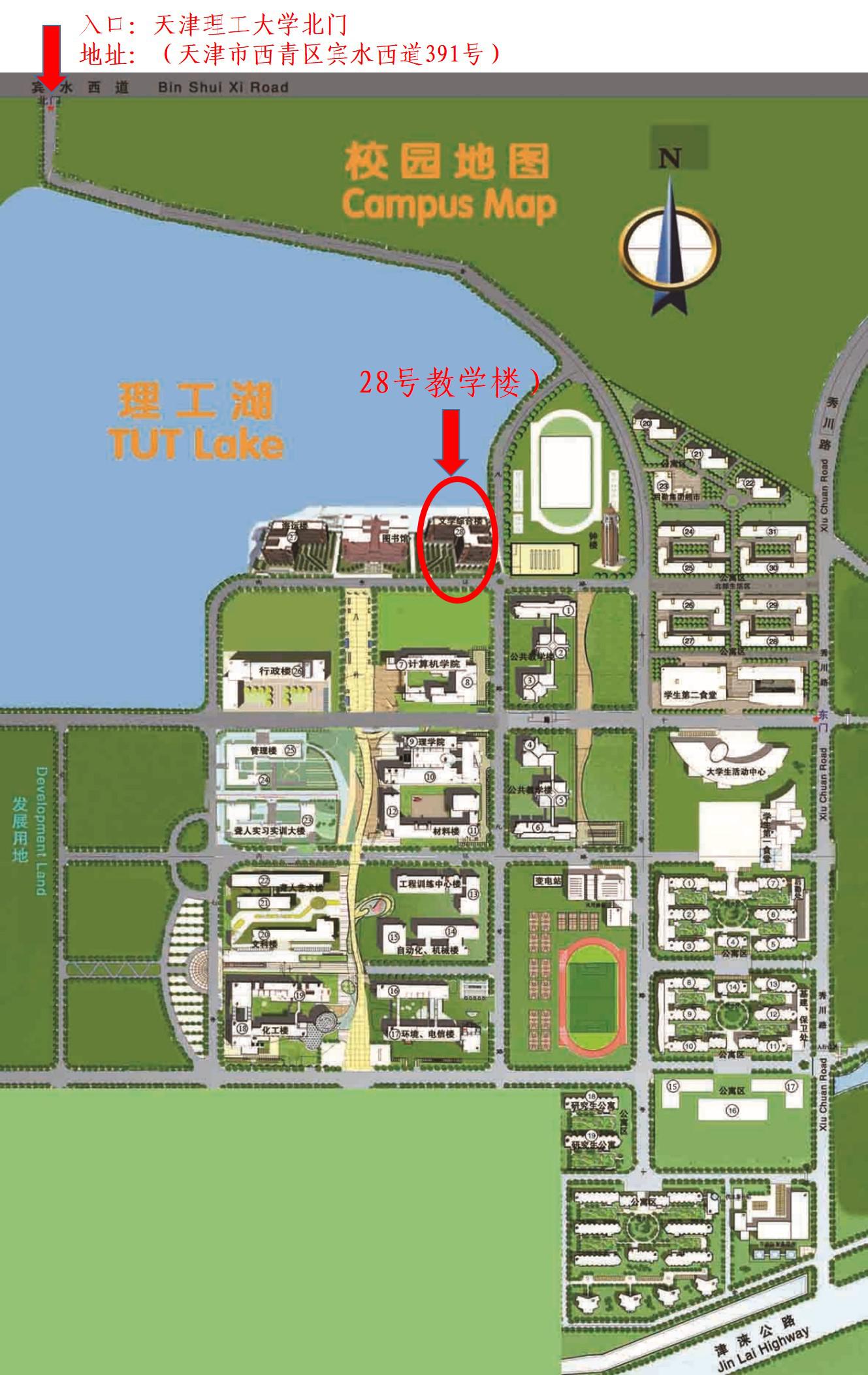 报考天津理工大学的考生笔试考场设在天津理工大学主校区28号教学楼,考试当天仅能由天津理工大学北门进入考点。请考生提前熟悉我校具体地理位置。(附件2.天津理工大学主校区平面图)