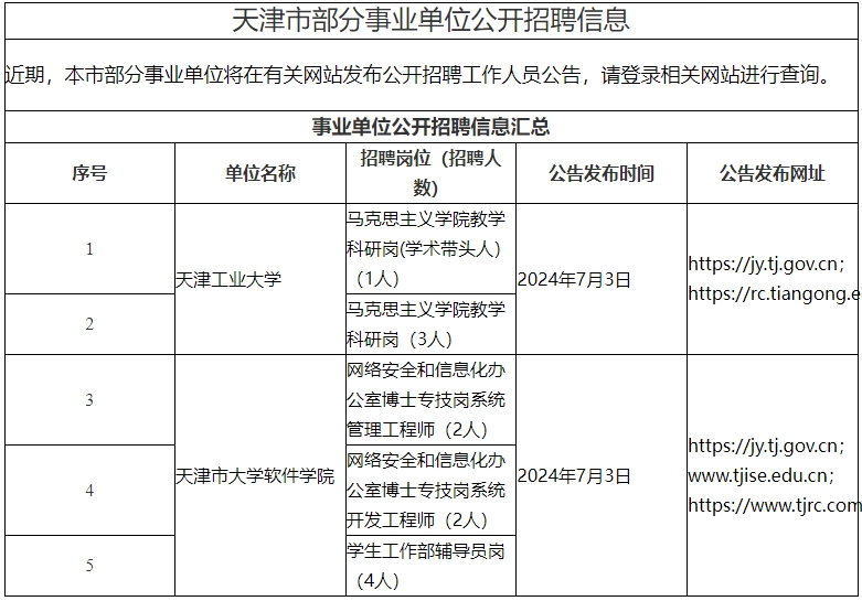 天津市部分事业单位公开招聘信息6.24