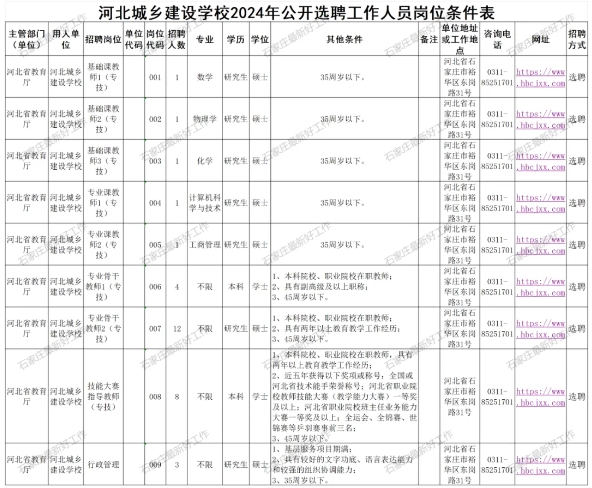 通过河北人社网(https://rst.hebei.gov.cn/)、河北城乡建设学校(https://www.hbcjxx.com)网站面向社会公开发布选聘信息。