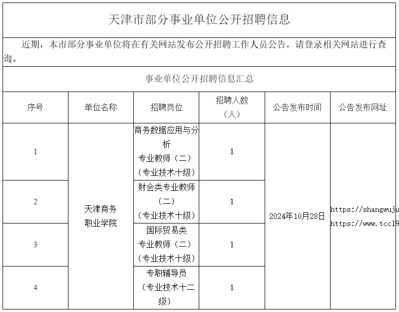 天津市部分事业单位公开招聘信息10.28