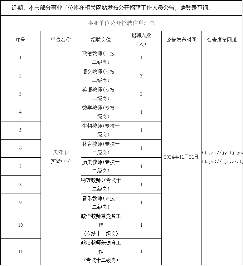 天津市部分事业单位公开招聘信息11.21