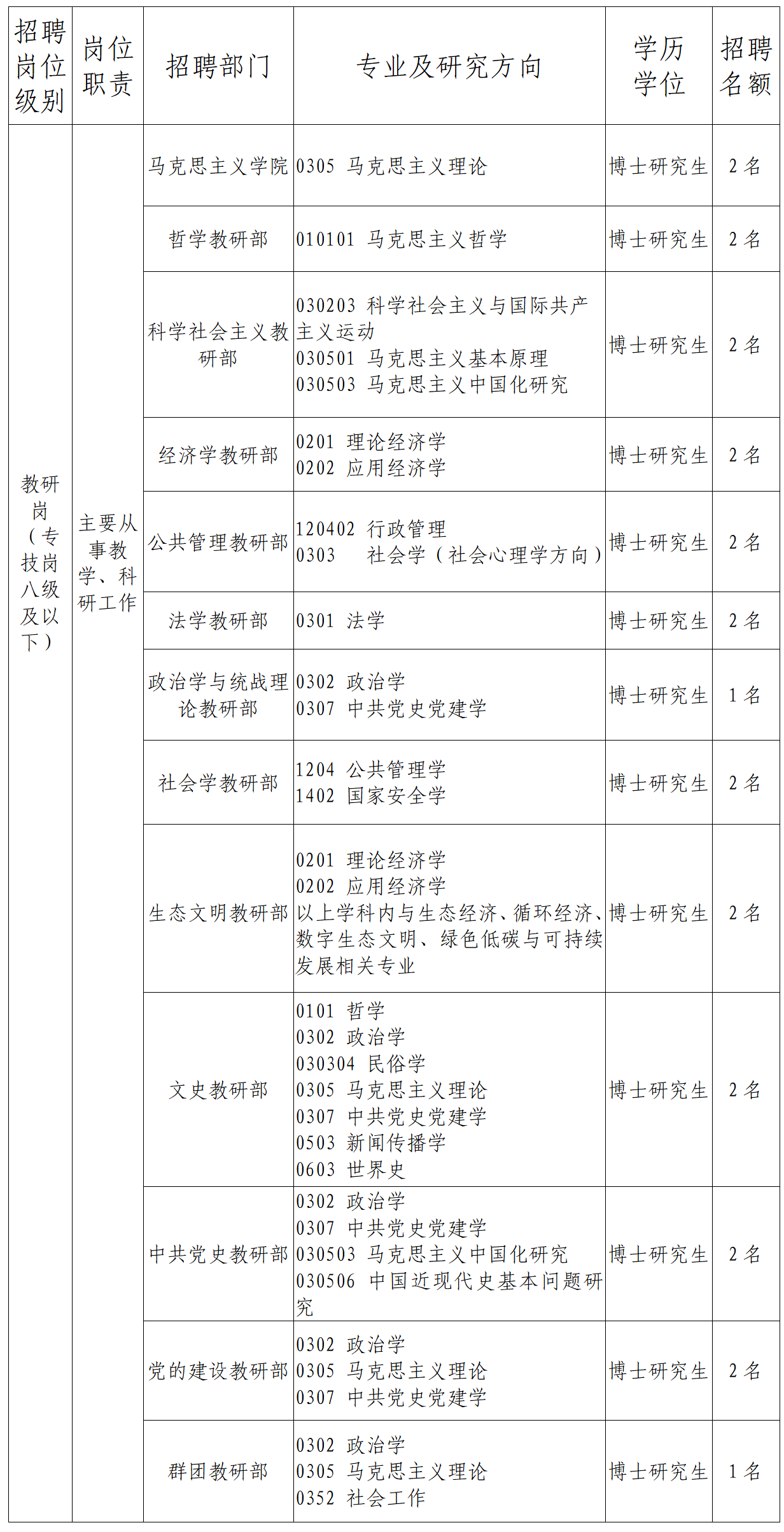 注:如教研岗各招聘部门出现空缺,在符合专业要求且与我校双方协商一致情况下,可按面试成绩依次调剂至空缺岗位录用。