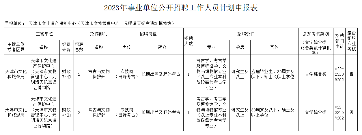 天津市文化遗产保护中心2023年事业单位 公开招聘工作人员方案