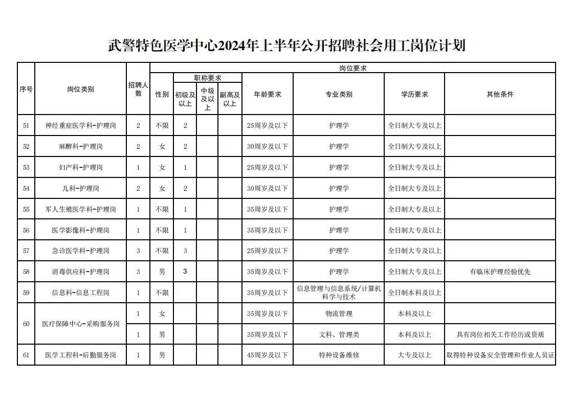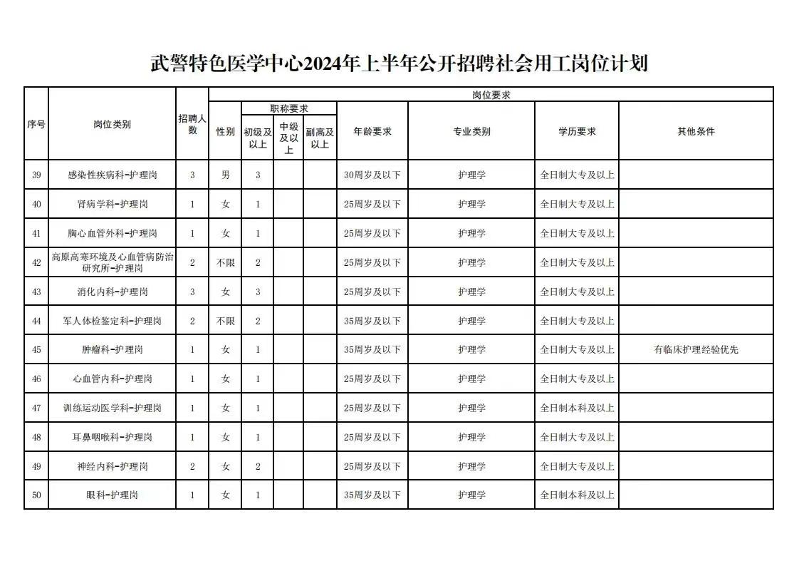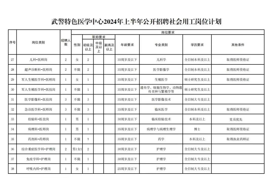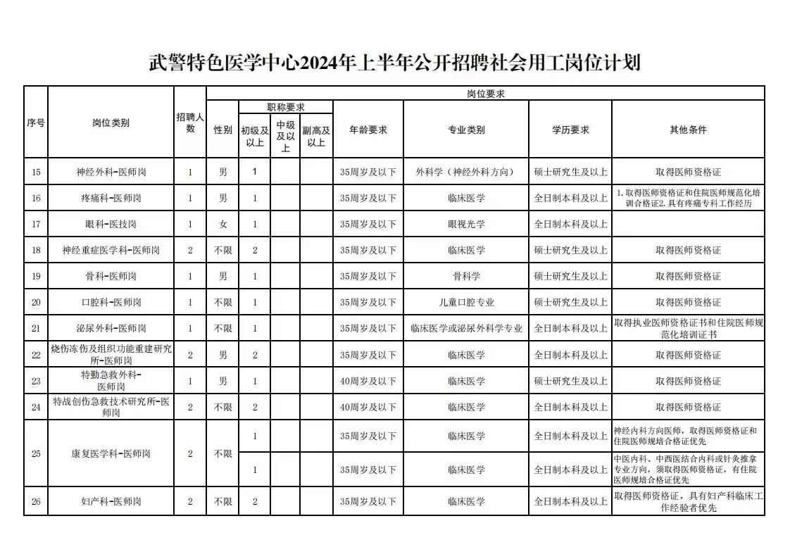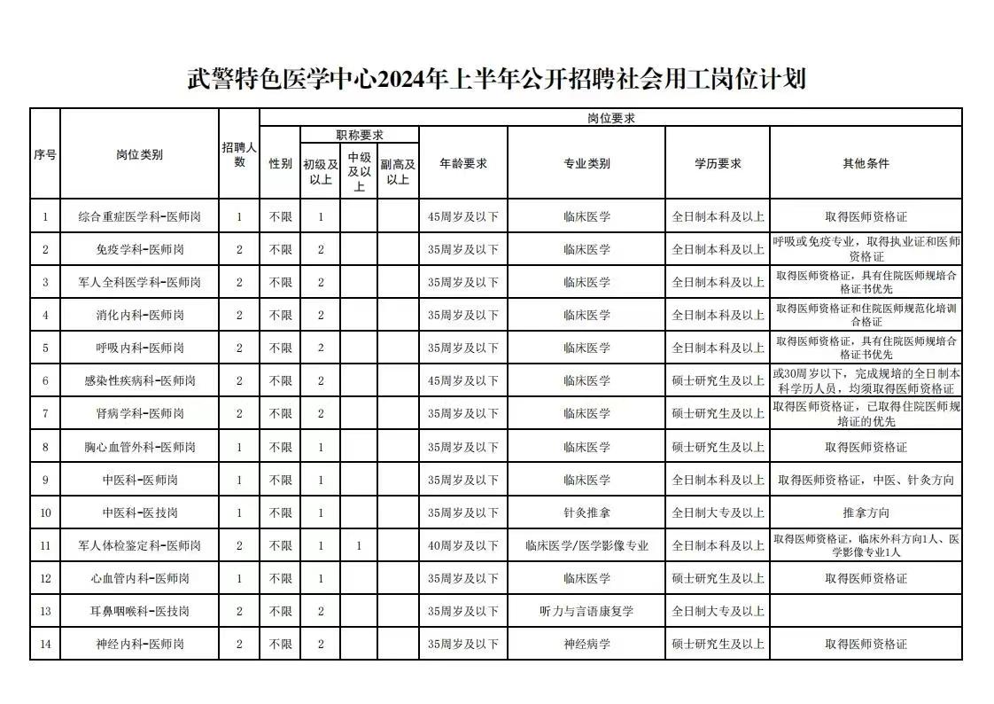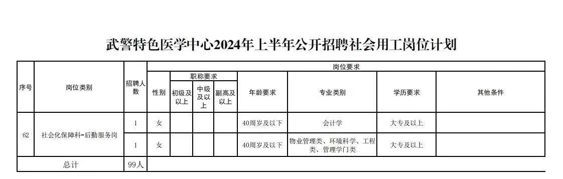 武警特色医学中心2024年度上半年社会用工招聘99人公告