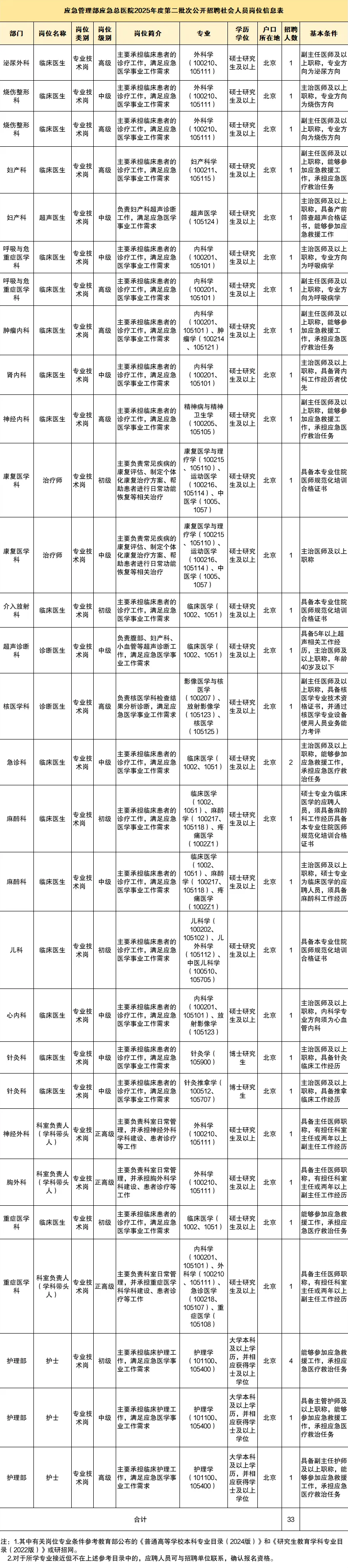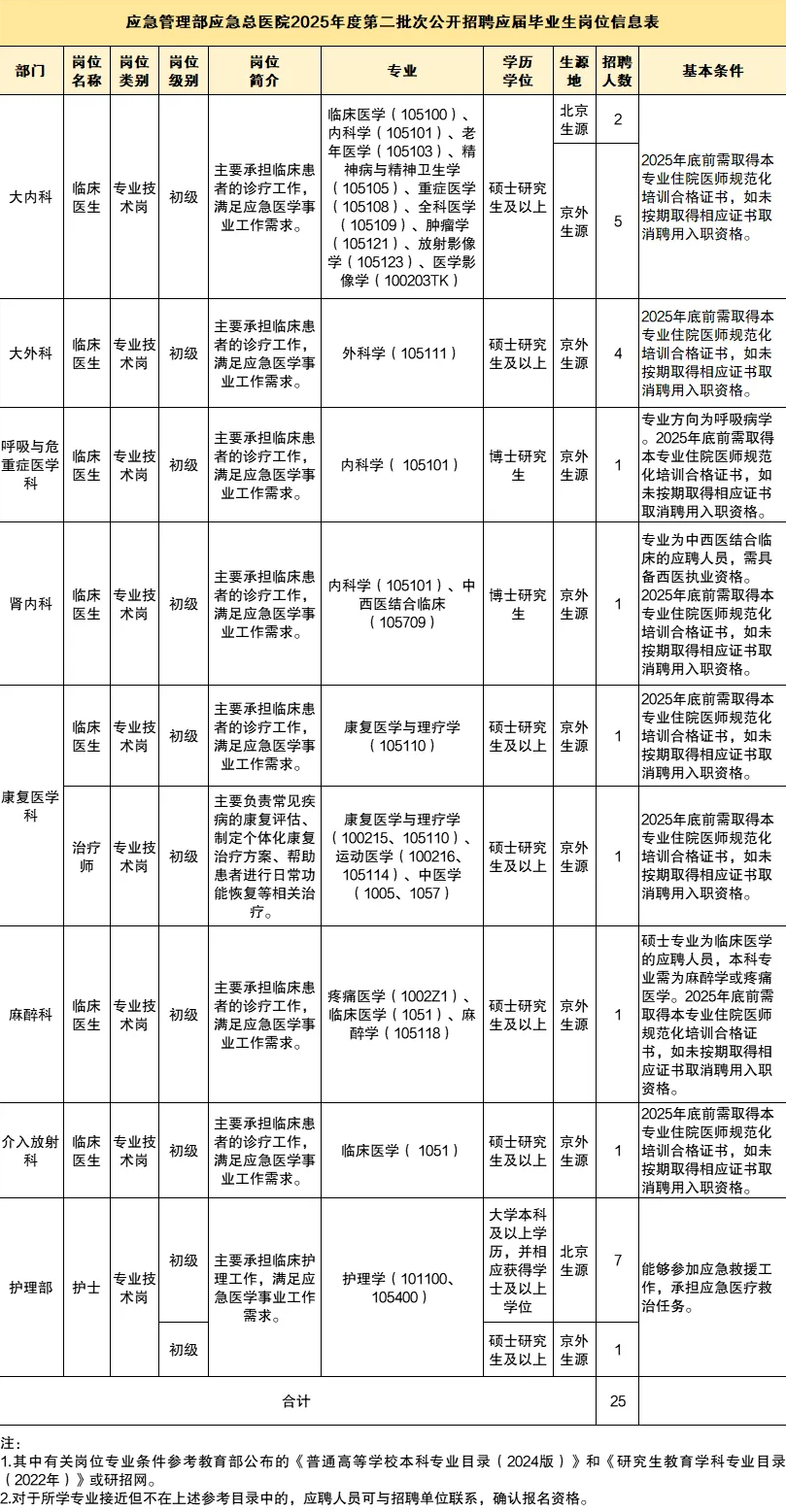 应急管理部应急总医院2025年度第二批次公开招聘公告