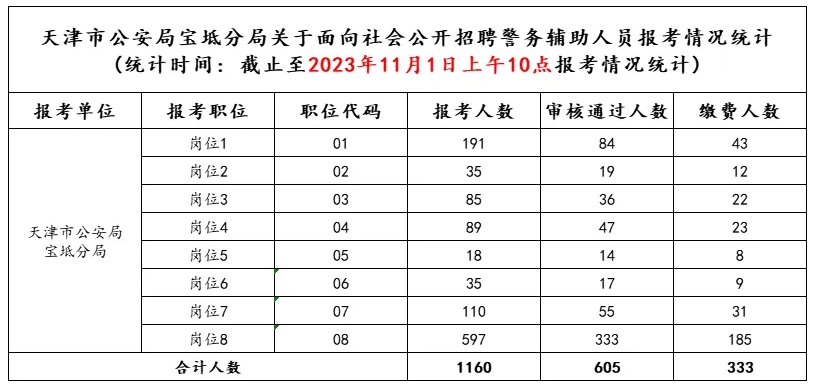 天津市公安局宝坻分局2023年关于面向社会公开招聘警务辅助人员 报名统计